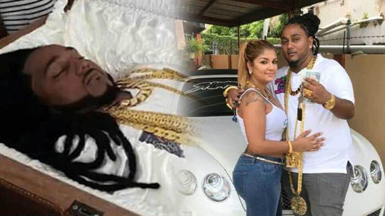 Seorang pria muda Trinidad dan wanita disiram sampanye sebelum dikremasi setelah upacara pemakaman di mana dia diletakkan di dalam peti emas yang memakai perhiasan senilai $ 100.000 atau senilai Rp 1,3 Miliar.